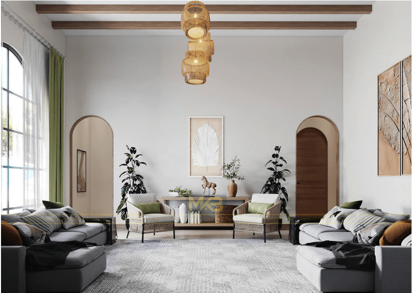 Phong cách Địa Trung Hải được áp dụng trong thiết kế nội thất nhằm đem lại cảm giác mộc mạc mà ấm cúng. Điều đó được thể hiện qua việc sử dụng những chất liệu gỗ thô mộc, những bức tường gạch hay trần nhà với những thanh gỗ tạo nên nét đặc trưng ấn tượng.